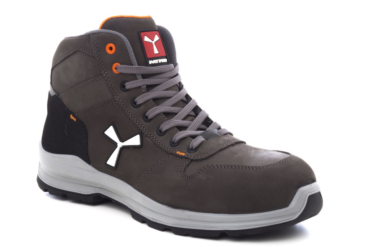 SICHERHEITSSCHUHE S3_HOHE SCHNÜRUNG_Mittelhoher antistatischer Herren-Sicherheitsschuh, Obermaterial aus wasserabweisendem und atmungsaktivem Leder, atmungsaktives und abriebfestes Innenfutter (auf der gesamten Innenfläche), 8+8 metallfreie Ösen, Hinterkappe aus Leder mit Pampasstruktur mit reflektierendem Einsatz, Zehenschutzkappe aus druckgegossenem Aluminium, herausnehmbare Einlage Ortholite X40 016, zertifizierte durchtrittsichere Sohle aus Verbundgewebe, Versteifungselement zum Schutz vor Verdrehungen, hufeisenförmiger Spitzenschutz, Zwischensohle aus federleichtem Polyurethan, Dämpfungssystem MASTER BALANCE aus PU-Polyether von hoher Bruchfestigkeit und ausgewogener Dichte, X-TRAIL-GRIP-Sohle aus TPU mit Fersen- und Zehenschutz.